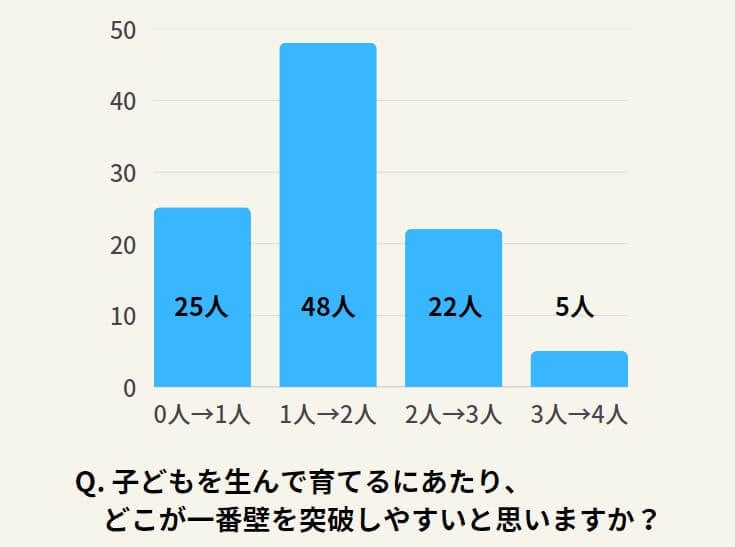 ・子どもを生んで育てるにあたり、1人→2人が一番壁を突破しやすい