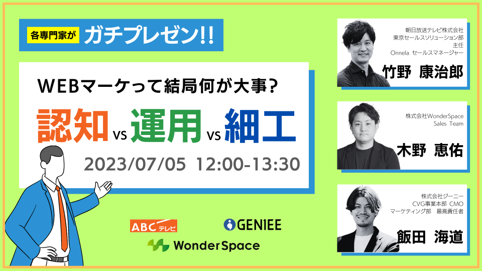 当セミナーでは、『認知 / 運用 / 細工』のそれぞれを専門に取り扱う現役マーケターが、事例や実体験も交えながらそれぞれの必要性を皆様にプレゼンします!