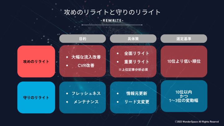 - リライトの考え方(攻めのリライト・守りのリライト)